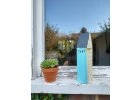 Hmyzí domek ve tvaru domečku – stylový hotel pro včelí samotářky Domek modrý s vlaječkami Originální kus z masivního dřeva s jedinečnou ruční malbou. Funkční útočiště pro...