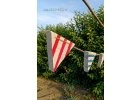 Stylová dřevěná dekorace do zahrady - girlanda pruhované praporky Originální dekorace z masivního dřeva. Žádná sériová výroba, ale poctivá ruční práce. Rozměr praporku: 10 x...